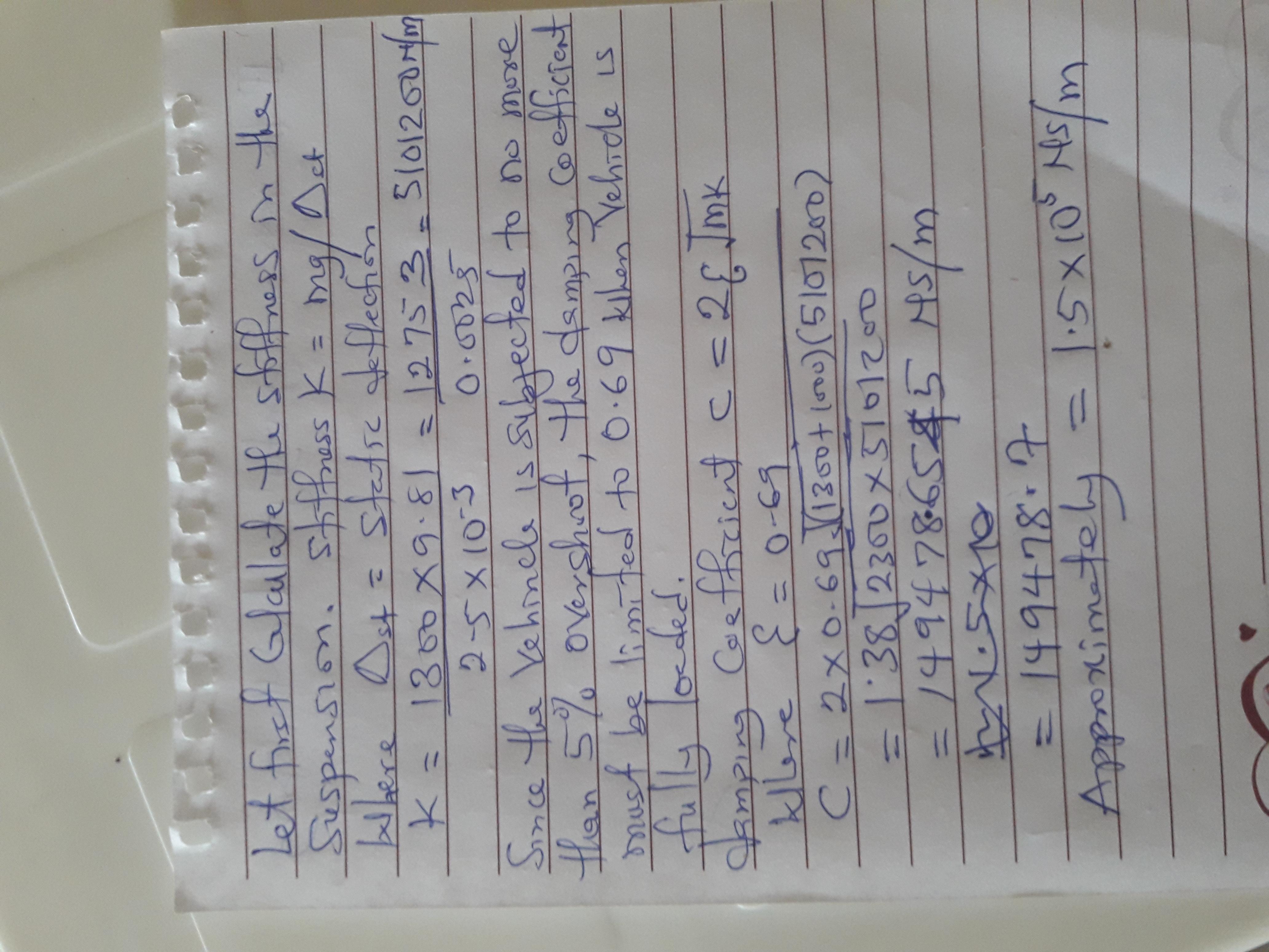 Answer: damping coefficient = 1.5×10^5Ns/m