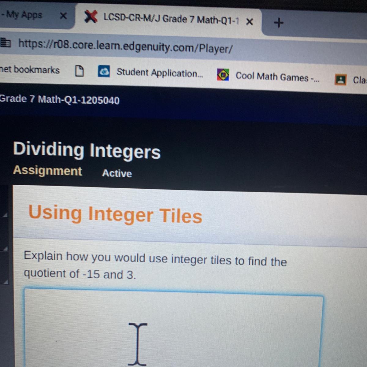 Explain how u would use the integer tiles to find the quotient of -15 and 3
