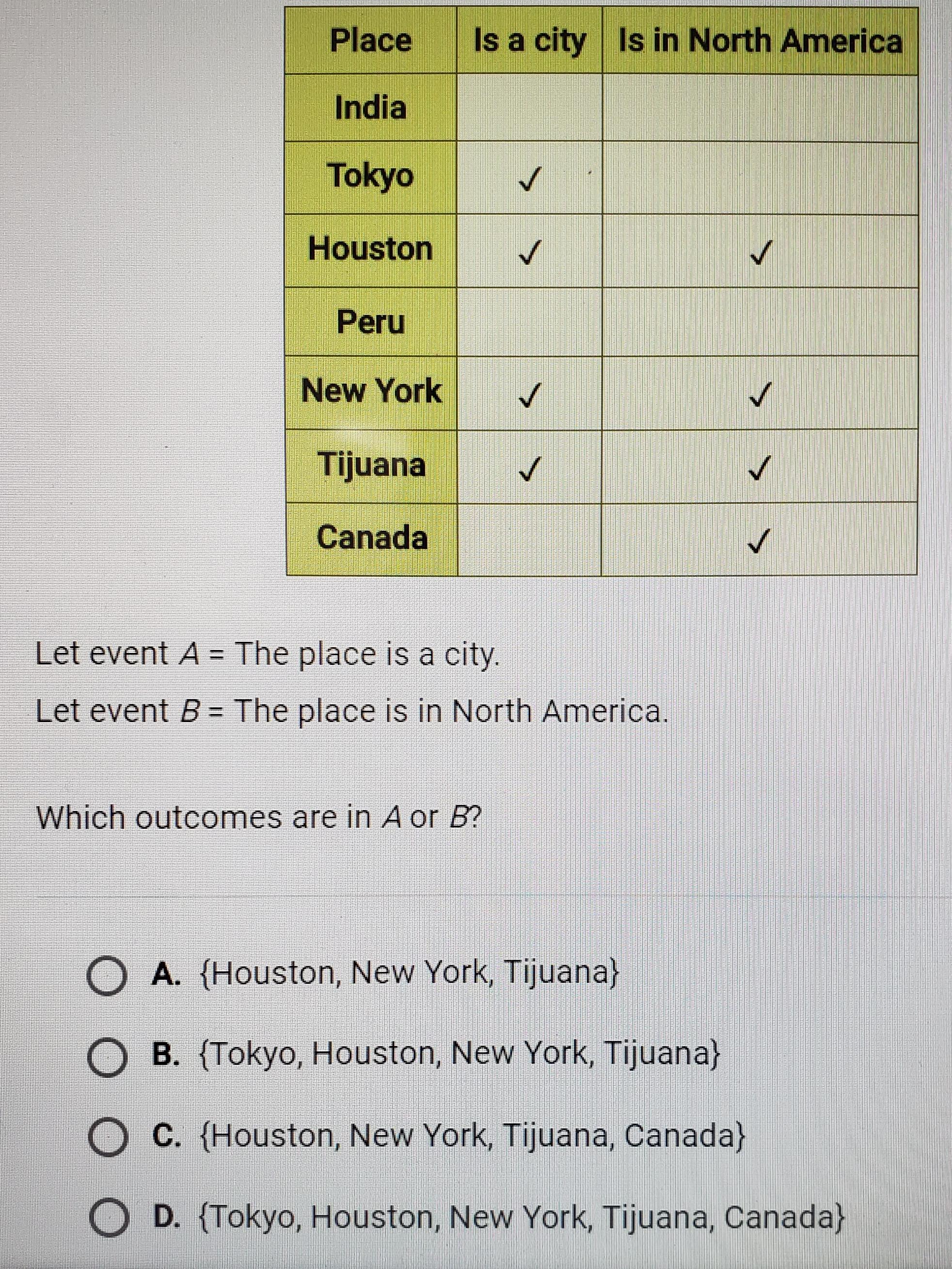 Answer: The correct choice is (C) A = {1, 2, 3, 4, 5, 7, 8}.