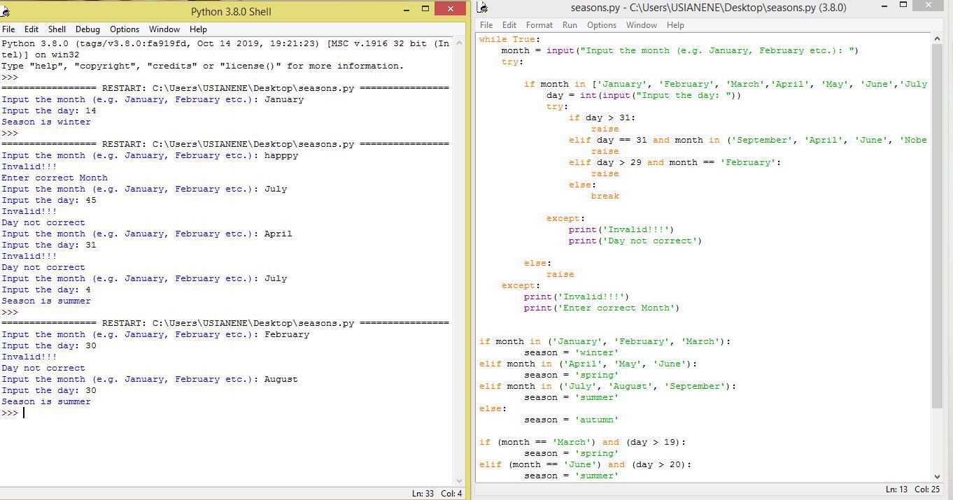 This part uses the given data to determine the season, leveraging IF statements to produce the result, which it then prints.
