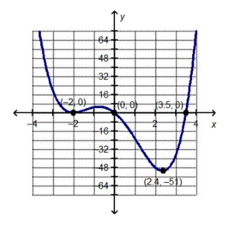 The graph displayed is a cubic polynomial characterized by two turning points and three x-intercepts. To determine the true statement, evaluate each option carefully.