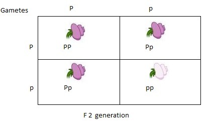 Mendel paired a dominant purple-flowered plant with a recessive white-flowered plant. The offspring in the F1 generation resulted in heterozygous purple-flowered plants (Pp). When two Pp plants are crossed in the F2 generation (Pp x Pp), the gametes produced are P and p. Among the offspring, you will find 3 purple-flowered plants and 1 white-flowered plant, generating a phenotypic ratio of 3:1, meaning one-quarter of the plants will have white petals. When converted to percentage, this translates to 25%.