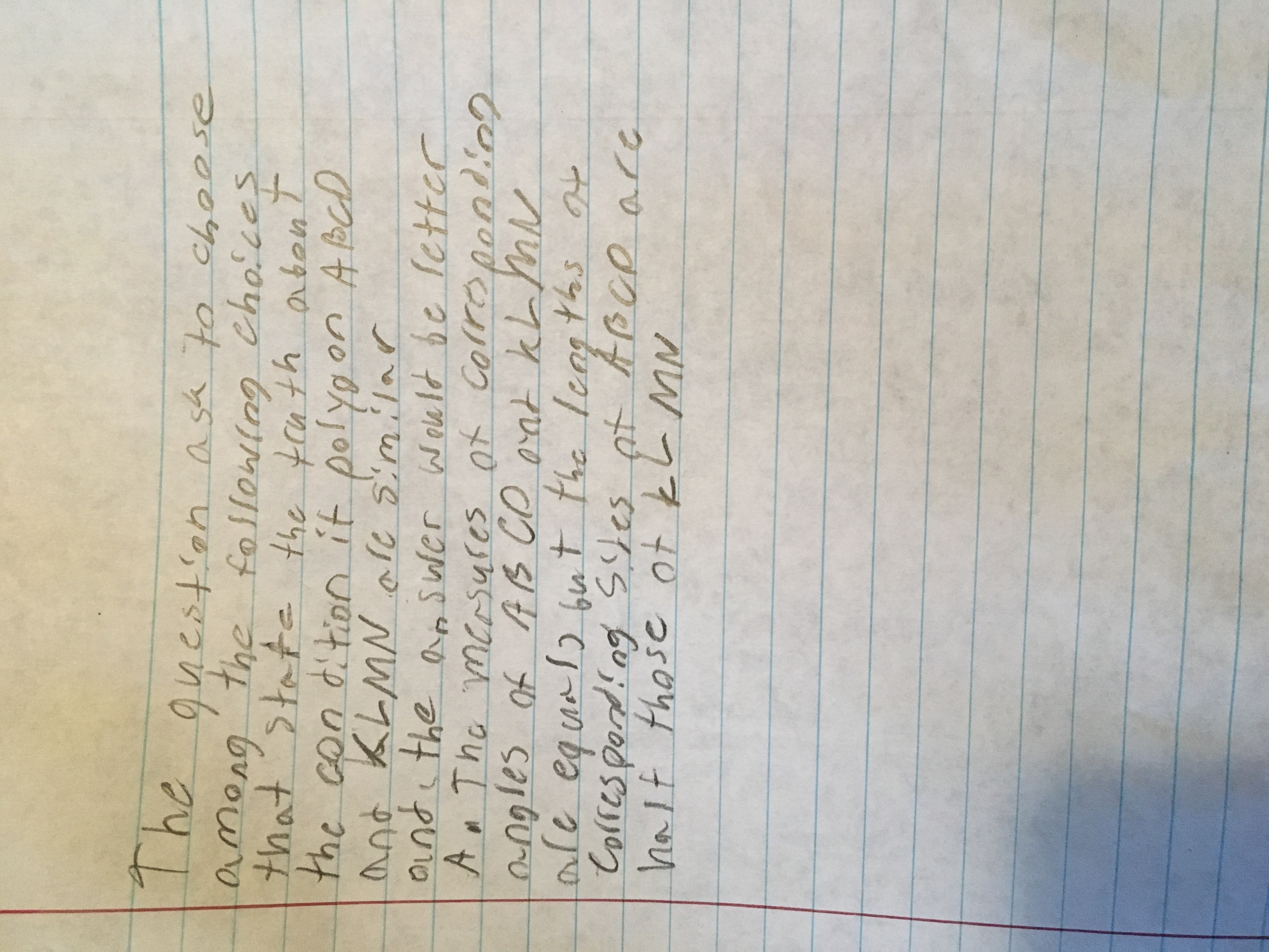Step-by-step explanation: It is required to identify which statement reflects the potential truth if the polygons ABCD and KLMN are similar.