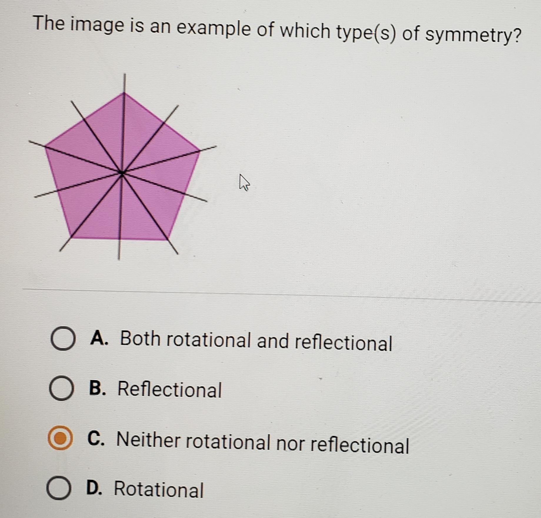 This image illustrates both reflectional and rotational symmetry.