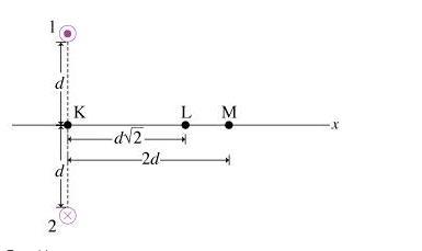 Point m is located a distance 2d from the midpoint between the two wires. find the magnitude of the magnetic field b1m created a