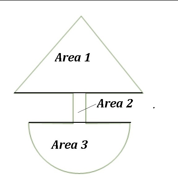 The total area of the composite shape can be calculated by adding Area 1, Area 2, and Area 3 together.