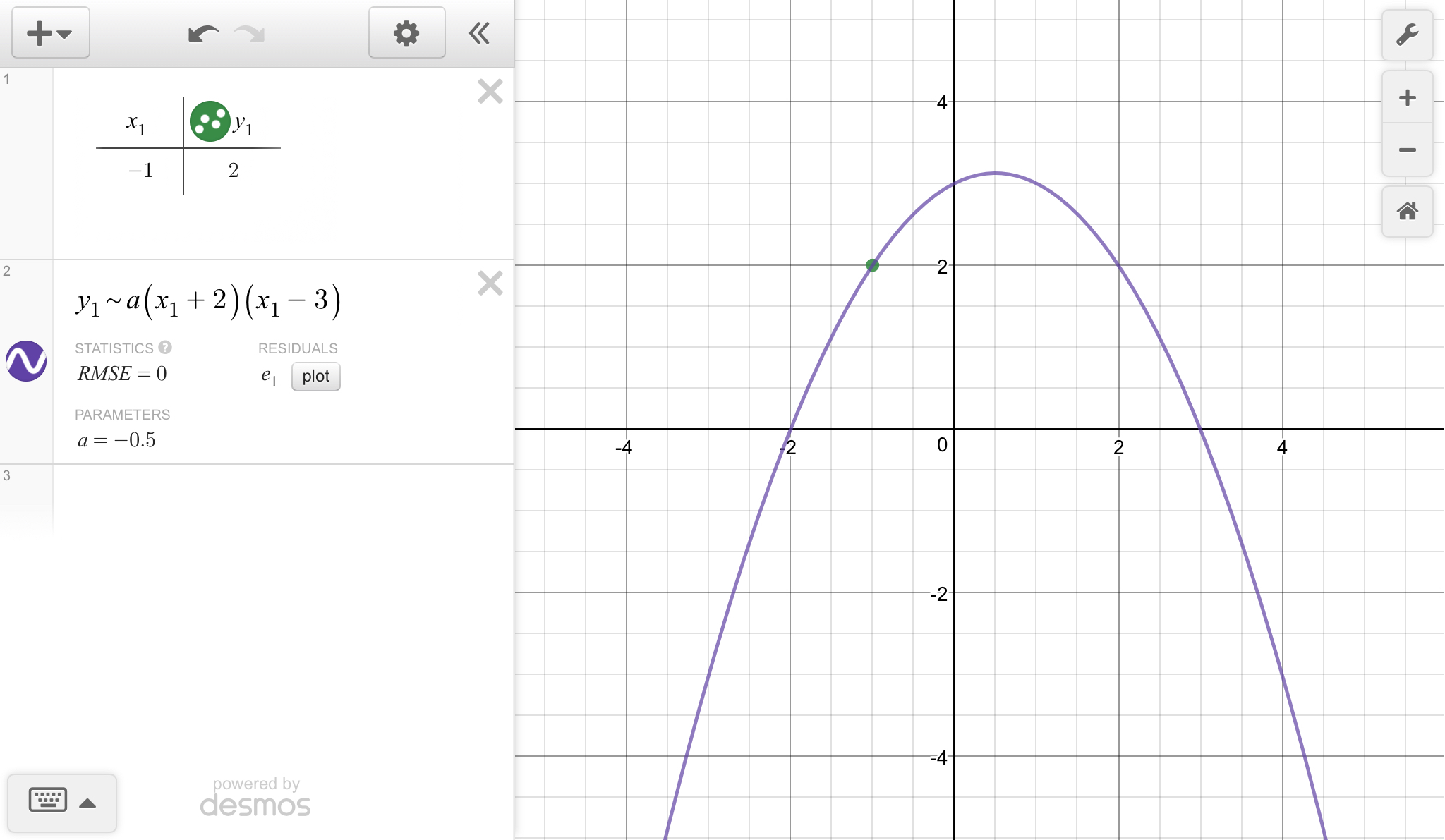 y = -1/2 (x + 2)(x - 3)