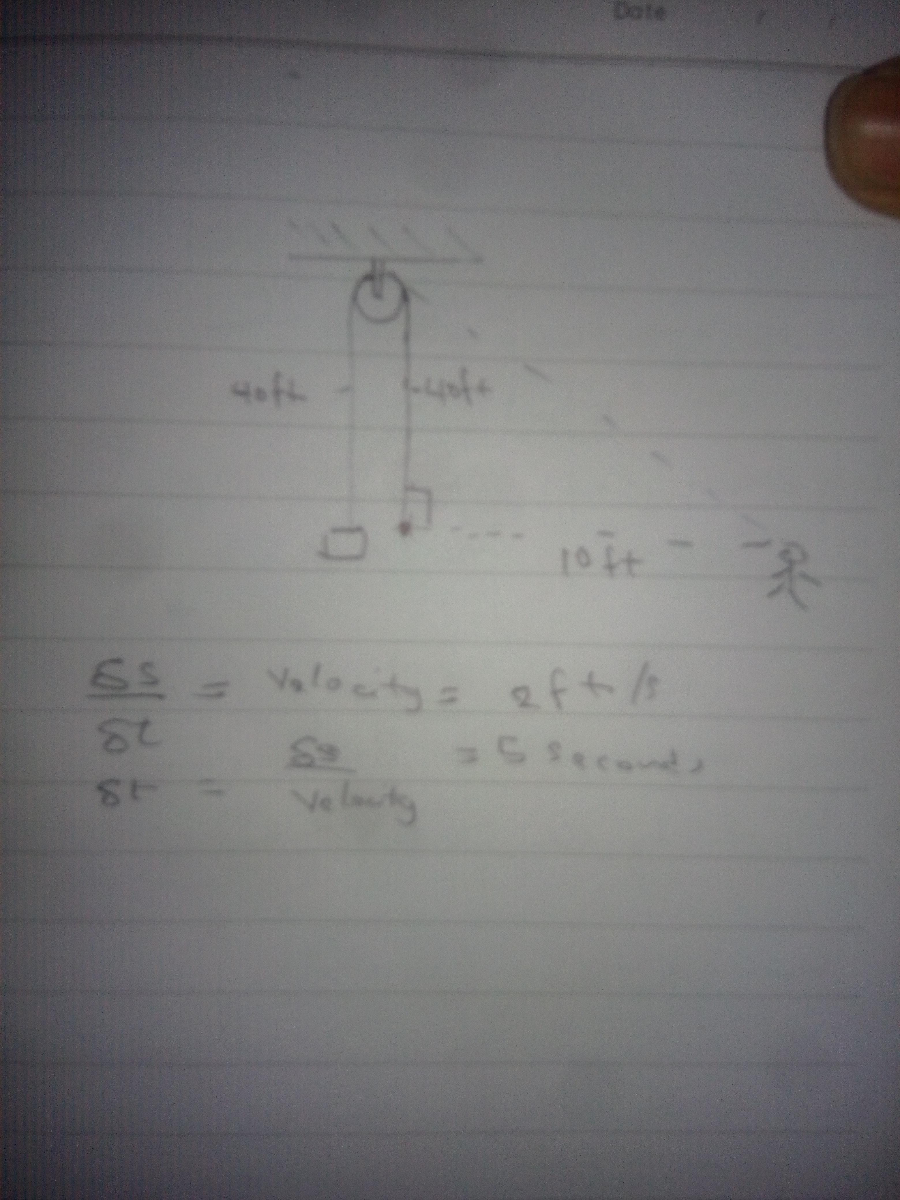 T = time it takes for the worker to cover 10 ft = the same time the load takes to rise = 5 seconds