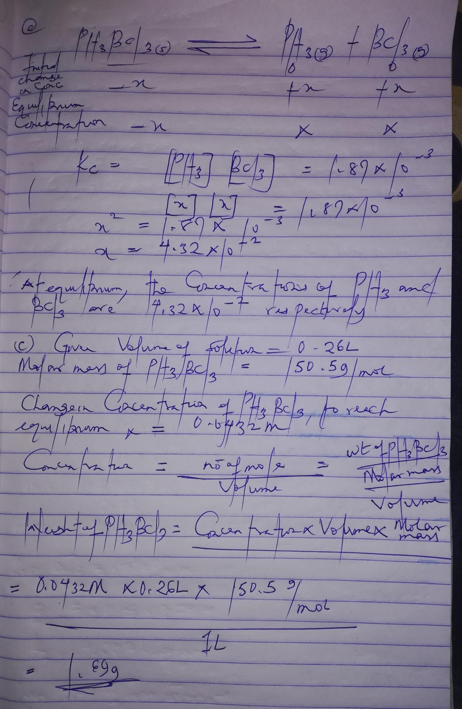 At 80 ∘C, Kc=1.87×10^−3 for the reaction PH3BCl3(s)⇌PH3(g)+BCl3(g)