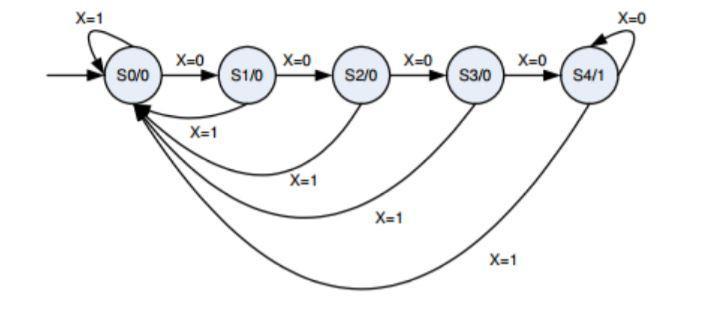 It is worth mentioning that the presented solution employs more machinery. One can also utilize a Mealy machine, where only 4 states suffice. Even with 5 states, no points will be deducted.