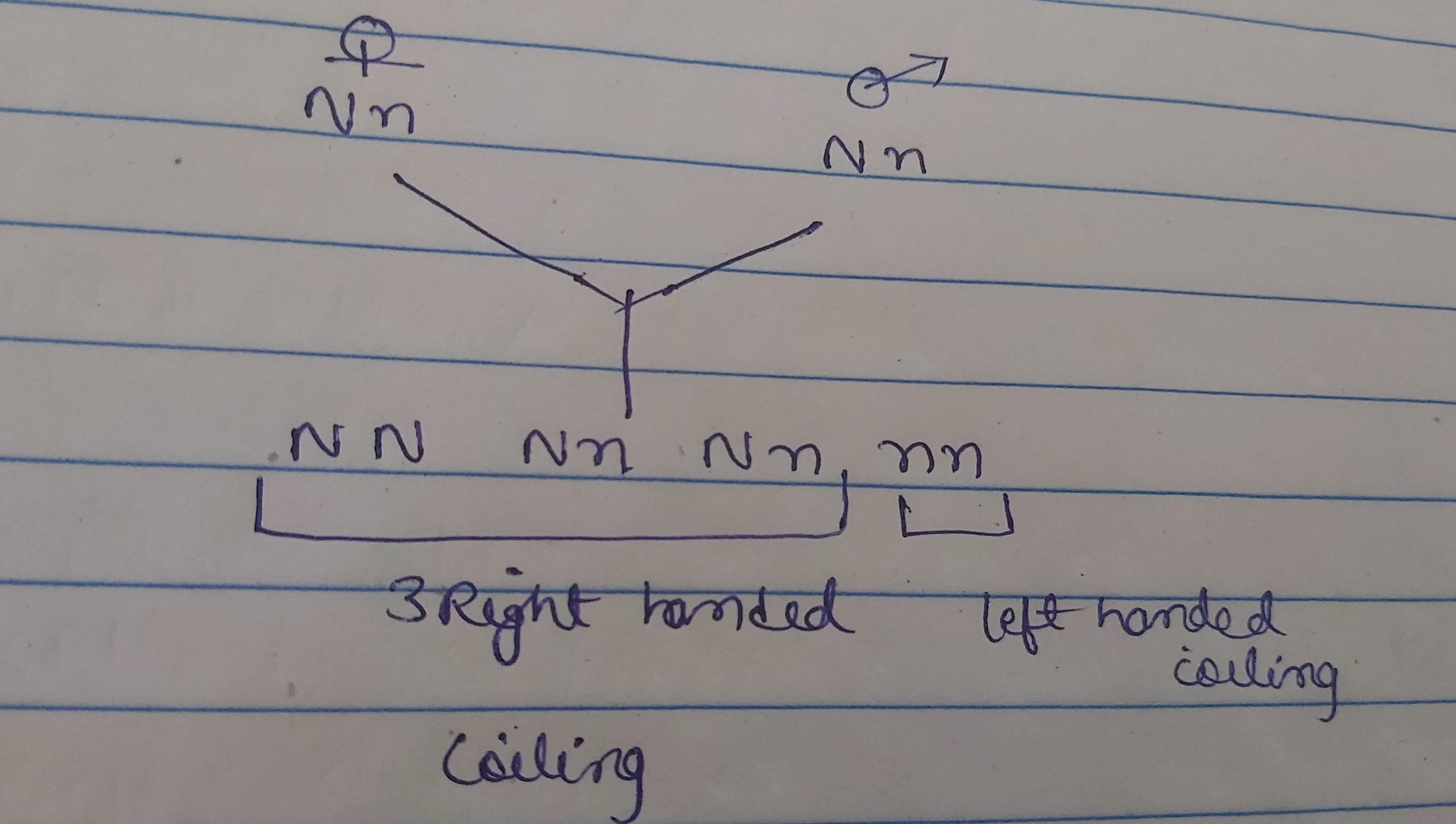 NN, Nn, and Nn represent the 3 instances of right-handed coiling while nn denotes left-handed coiling.