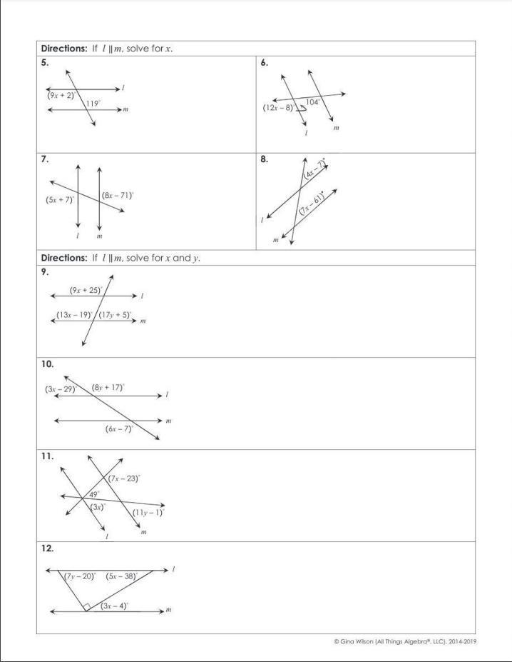 12). (5x - 38)° = (3x - 4)° [by corresponding angles]