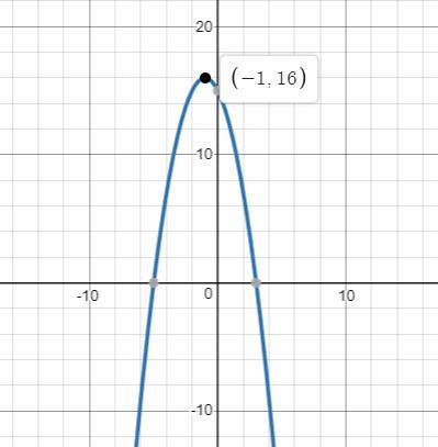 D'après le graphe de la fonction donnée f(x), le point maximum est le sommet à (-1,16)
