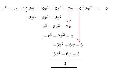 Provided: (2x^4-3x^3-3x^2+7x-3)\div (x^2-2x+1)