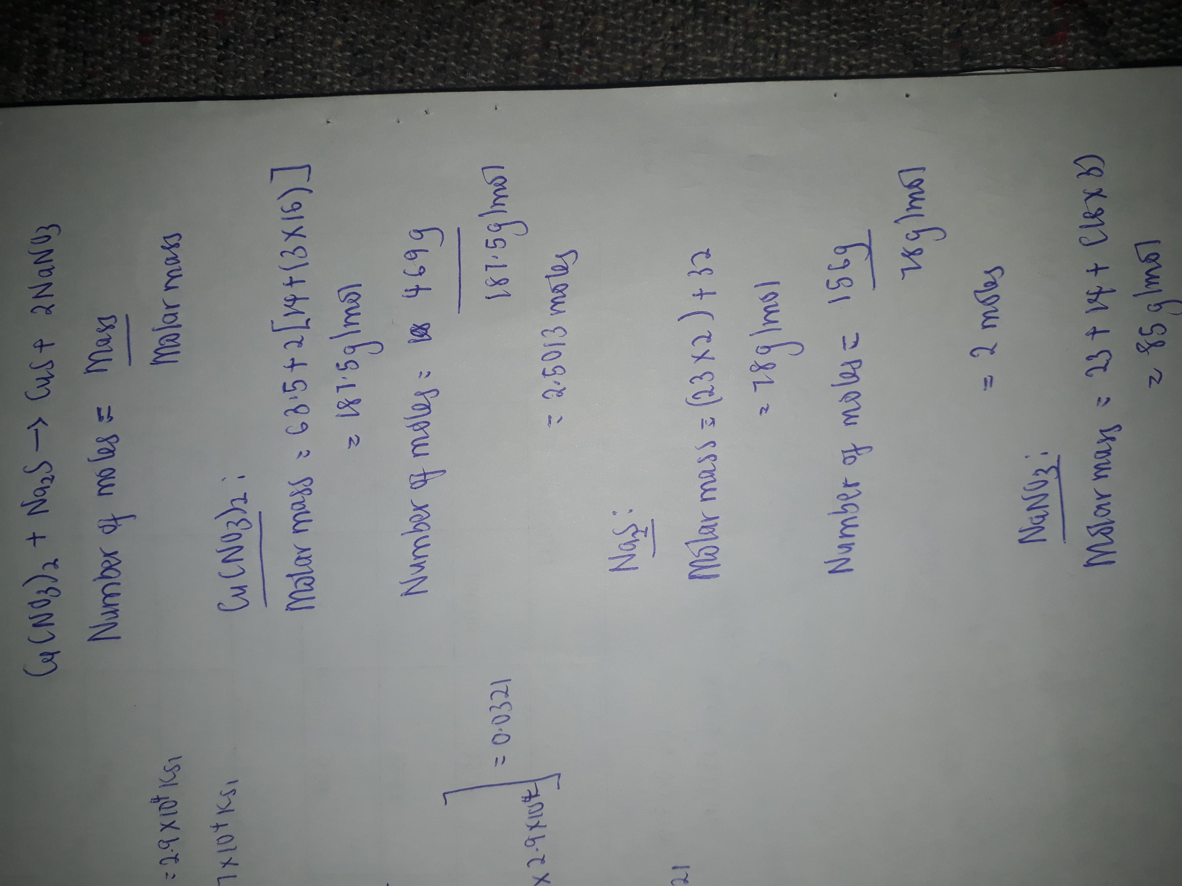 a precipitate. In this reaction 469 grams of copper(II) nitrate were combined with 156 grams of sodium sulfide to produce 272 grams of sodium nitrate.