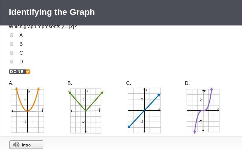 Which graph represents y = |x|? A B C D