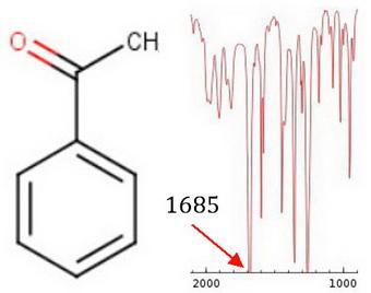 Resonance impacts with the aromatic ring modify the C=O bond in acetophenone, giving it a varying single and double bond character, with the bond frequency measuring 1685 cm⁻¹.