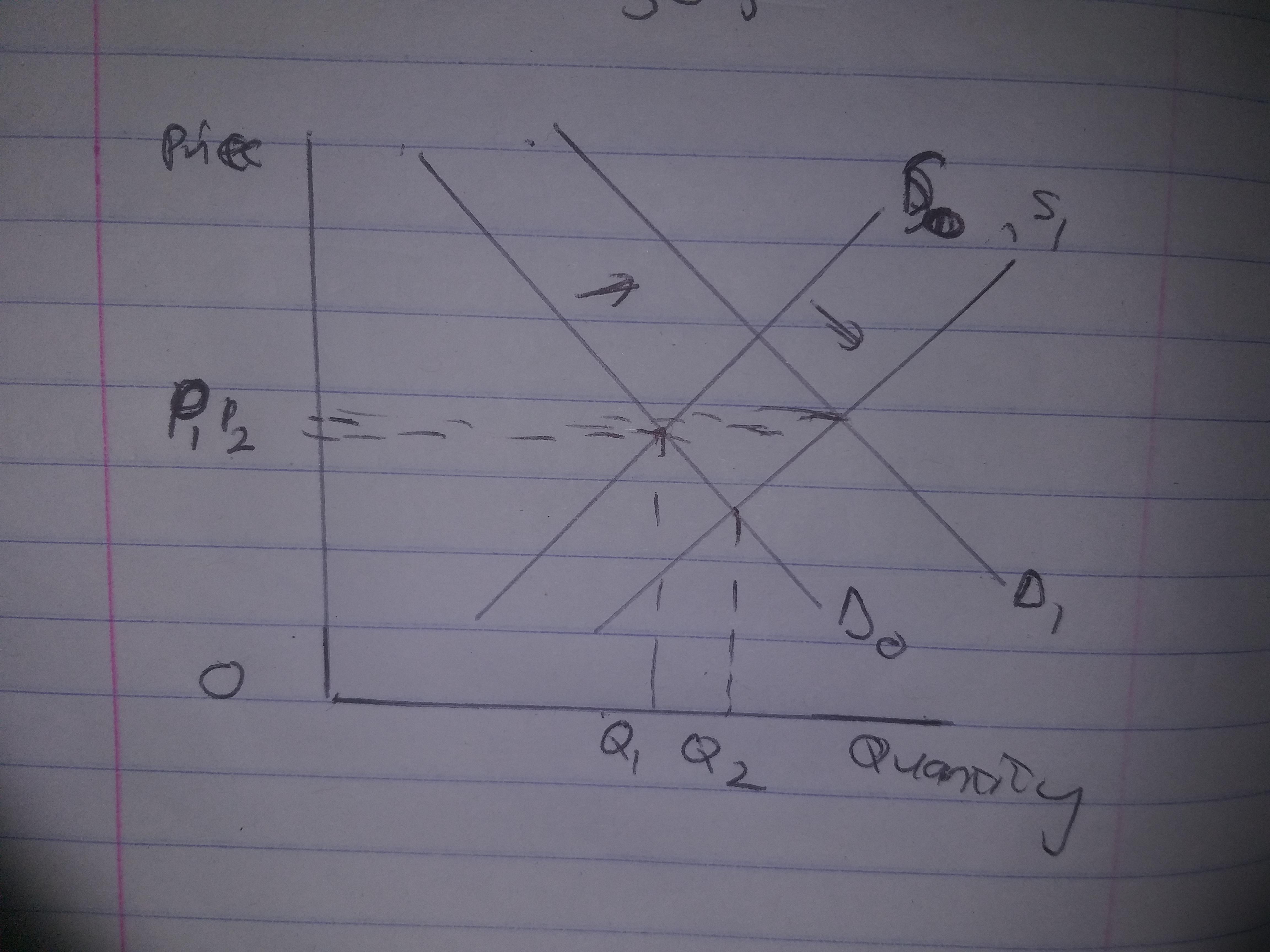 Taking both of these factors into account indicates that there will be a rise in equilibrium quantity, while the effect on equilibrium price cannot be determined.