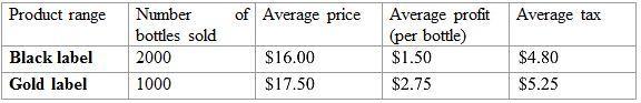 The profit produced by combining sales of gold label and black label equals the total of their individual profits. From the table \begin{array}{ccc}&\text{Number of bottles sold}&\text{Average profit (per bottle)}\\\text{Gold label}&1,000&\$2.75\end{array} you find the gold label's profit 1,000\cdot \$2.75=\$2,750. and similarly from another table \begin{array}{ccc}&\text{Number of bottles sold}&\text{Average profit (per bottle)}\\\text{Black label}&2,000&\$1.50\end{array} find the black label's profit 2,000\cdot \$1.50=\$3,000.. Adding these yields \$2,750+\$3,000=\$5,750.. Thus, option 5 is the correct choice.