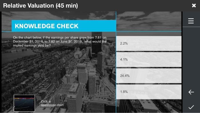 Relative Valuation (45 min) X KNOWLEDGE CHECK On the chart below, if the earnings per share grew from 7.61 on December 31, 2018,