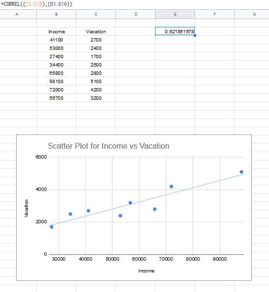 - An increase in income corresponds to an increase in vacation spending.