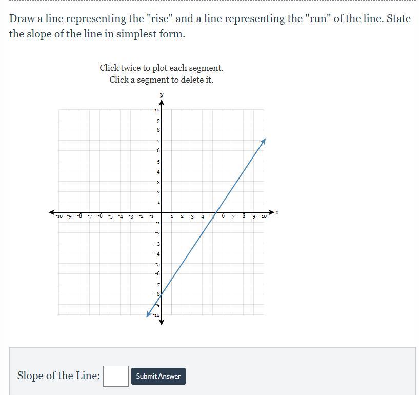 Draw a line representing the "rise" and a line representing the "run" of the line. State the slope of the line in simplest form.