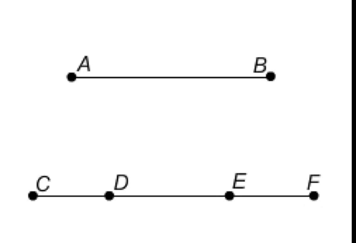 This indicates that CE and DF are segments, and the length of any segment equals the total of its parts.