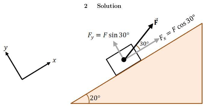F forms a 30° angle with the ramp