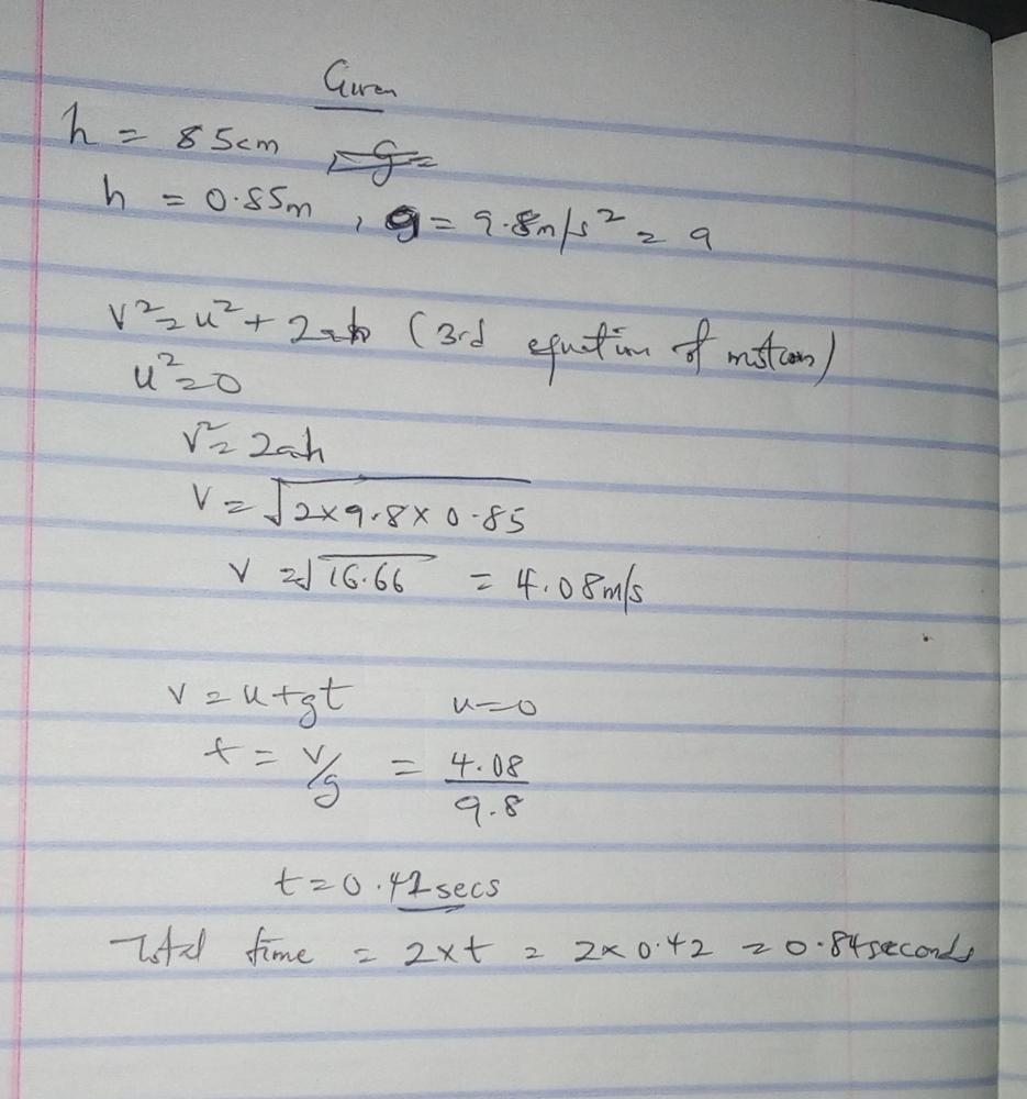 se into the snow to catch its meal. If a fox jumps up to a height of 85 cm , calculate the speed at which the fox leaves the snow and the amount of time the fox is in the air. Ignore air resistance.